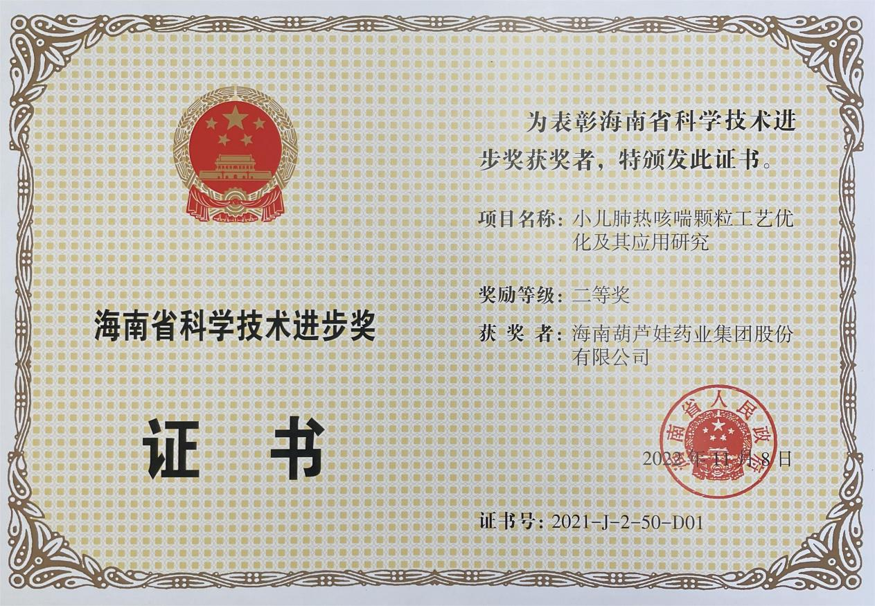 为此,小儿肺热咳喘颗粒的制备方法获得了第二十一届中国专利优秀奖(2019年),专利申请号:ZL201010134951,此次作为专利技术的应用,获得了2021年度海南省科学技术进步奖二等奖。在此之前,NG28牌小儿肺热咳喘颗粒还多次被授予“临床价值中成药品牌”、“中国连锁药店最具合作价值单品”,荣登“中国医药品牌榜”。