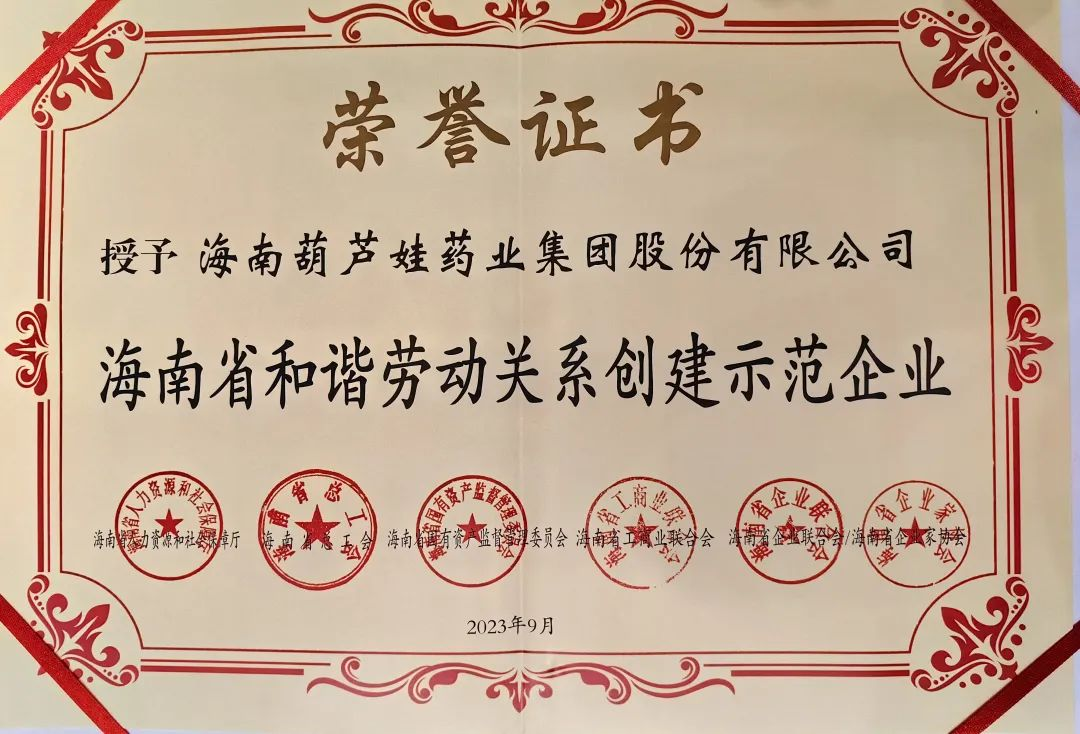 NG28药业集团获评“海南省和谐劳动关系创建示范企业”